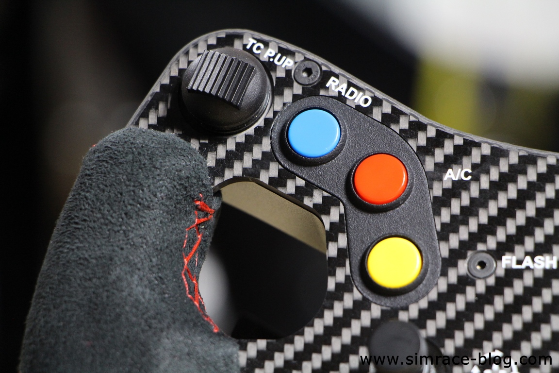 Mais ce n’est pas le seul changement puisque les shifters magnétiques initialement en carbone sont remplacés par des modèles également en aluminium qui s’intègrent parfaitement à la coque monobloc et hausse d’un cran la qualité de ce volant. On trouve aussi sur la face avant des boutons de type « hat switch » cliquable ainsi qu’un joystick qui sera utile pour notamment naviguer dans les menus de nos simulations favorites.