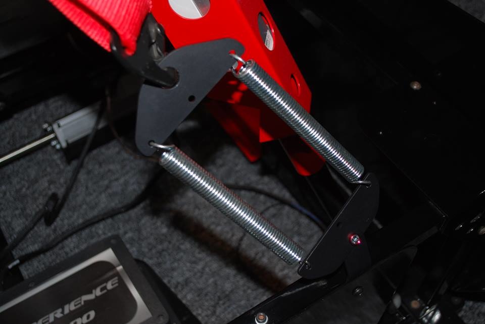 A la base, la fixation du harnais sur le châssis fixe se fera sur des ressorts qui vont amortir l’effet. Et heureusement sinon la compression risquerait d’être forte. On pourra même régler la force de compression en mettant 2 ou 3 ressorts. SR Hardware peut fournir plus de ressort mais alerte sur le fait que trop de tension peut endommager les vérins.